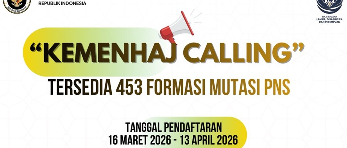 AMPHURI.ORG, JAKARTA—Kementerian Haji dan Umrah (Kemenhaj) Republik Indonesia membuka seleksi mutasi masuk Pegawai Negeri Sipil (PNS) Tahun 2026. Sebanyak 453 formasi tersedia bagi PNS dari kementerian, lembaga, maupun pemerintah daerah di seluruh Indonesia.