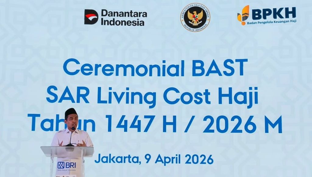 AMPHURI.ORG, JAKARTA–Kementerian Haji dan Umrah melalui Direktorat Jenderal Pengembangan Ekosistem Ekonomi Haji dan Umrah (Ditjen PE2HU) menandatangani Berita Acara Serah Terima (BAST) banknotes Saudi Arabian Riyal (SAR) untuk living cost jamaah haji reguler 1447H/2026M. Penandatanganan BAST living cost bagi 203.320 jamaah haji, di Kantor Pusat penyedia layanan keuangan, Jakarta, Kamis (9/4/2026).